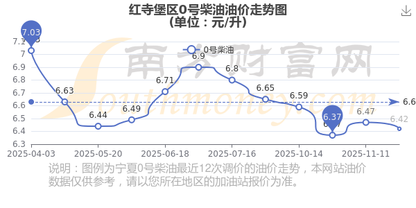 紅寺堡區(qū)0號柴油歷史油價走勢圖