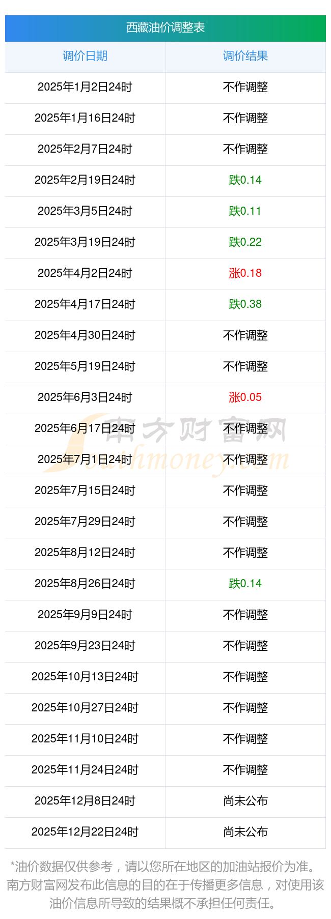 拉薩汽油、柴油11月30日每升的價格是多少?11月25日調(diào)整后的價格詳情如下:。拉薩下一輪油價調(diào)整時間12月8日24時,距離現(xiàn)在還有8.29天。