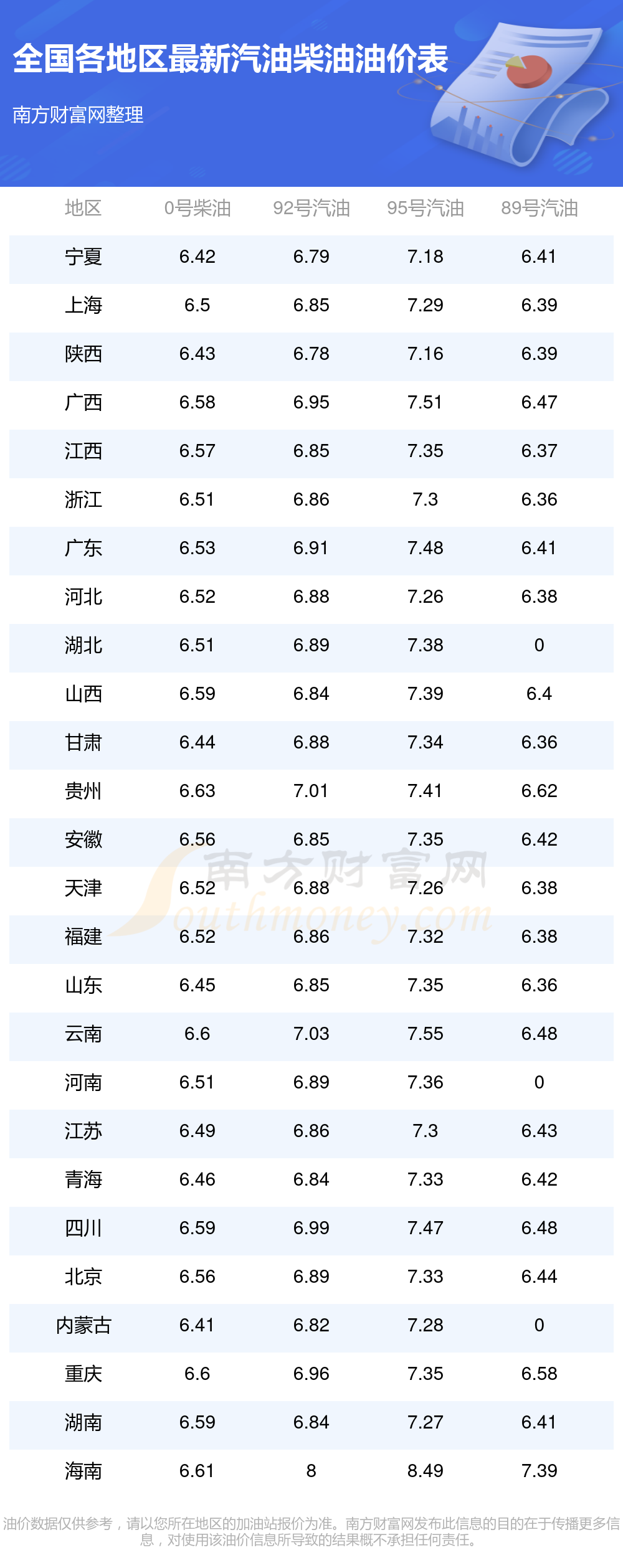 2025年11月30日全國(guó)各地汽油價(jià)格一覽表