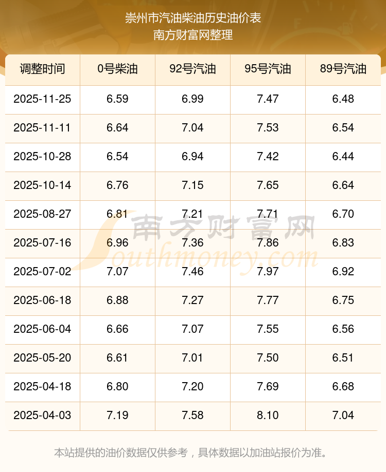 崇州市歷史油價(jià)表