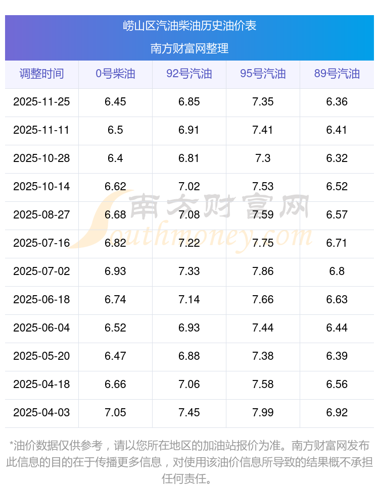 2025年嶗山區(qū)油價(jià)調(diào)整時(shí)間表