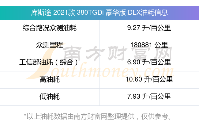 以上油耗數(shù)據(jù)由南方財(cái)富網(wǎng)整理提供,僅供參考。
