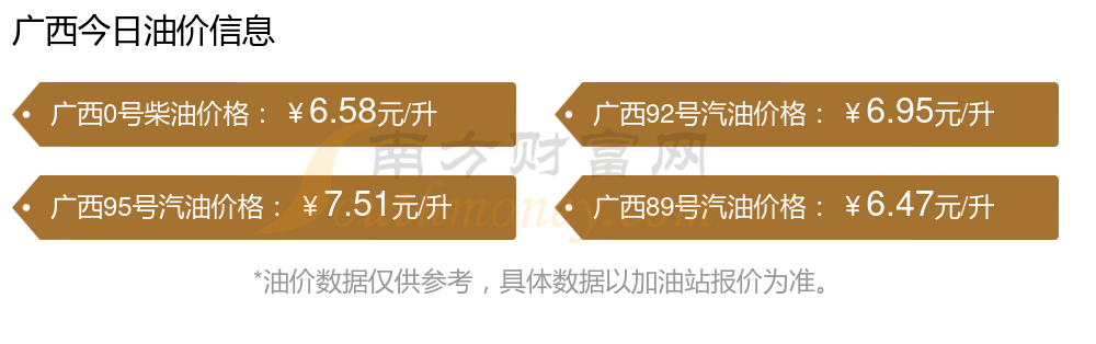 油價數(shù)據(jù)僅供參考,請以您所在地區(qū)的加油站報價為準(zhǔn)。南方財富網(wǎng)發(fā)布此信息的目的在于傳播更多信息,對使用該油價信息所導(dǎo)致的結(jié)果概不承擔(dān)任何責(zé)任。