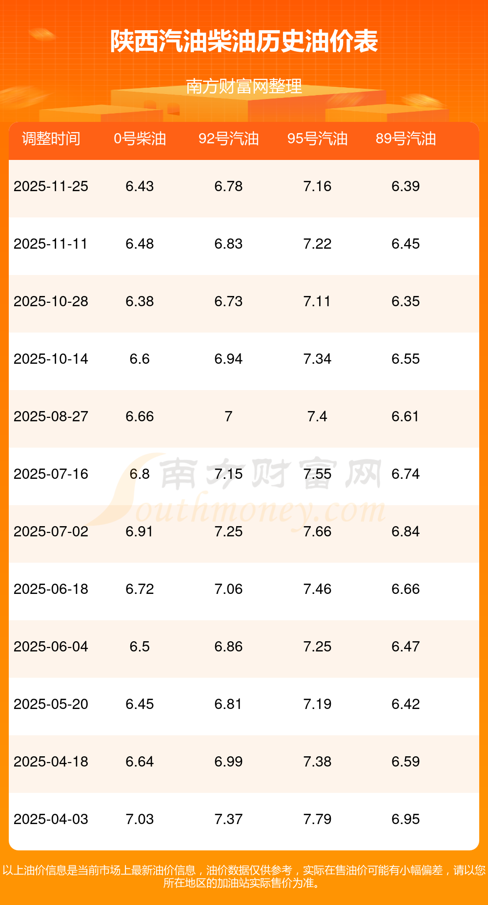 (11月30日)92、95號汽油價格一覽表