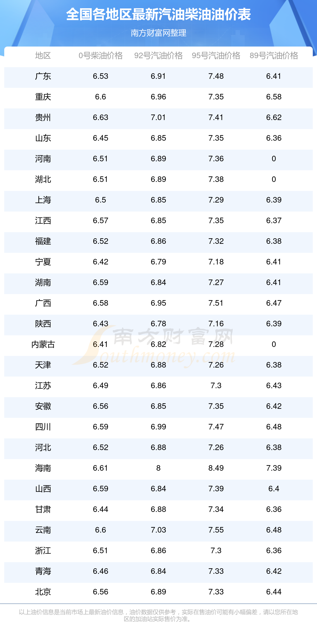 油價數(shù)據(jù)僅供參考,請以您所在地區(qū)的各加油站報價為準(zhǔn)。