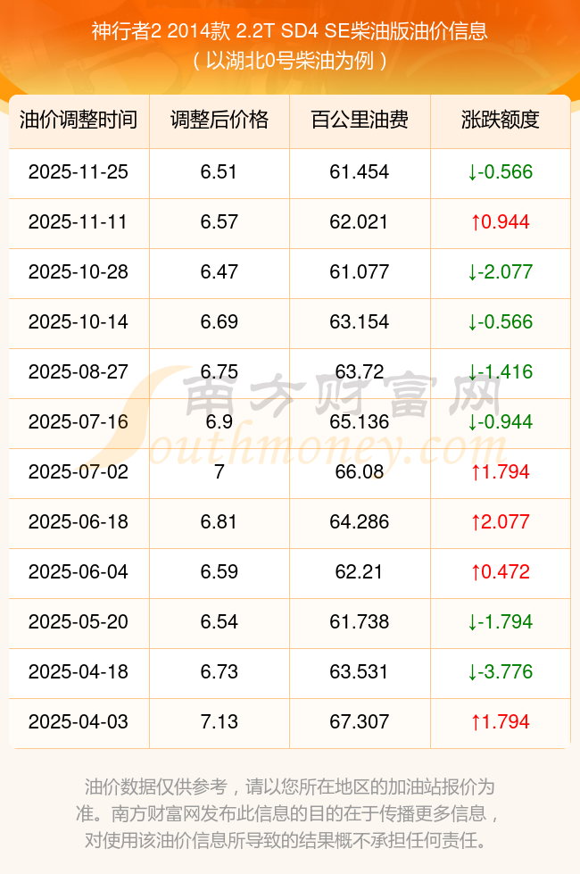 根據(jù)11月25日0號(hào)柴油最新調(diào)整價(jià)格6.51元/升來(lái)計(jì)算(以湖北為例),該車型每百公里的平均油費(fèi)是61.454元,上一輪11月11日調(diào)整價(jià)格6.57元每升來(lái)計(jì)算,每百公里的平均油費(fèi)是62.021元,對(duì)比上一輪少花0.566元,下一輪的油價(jià)調(diào)整時(shí)間是12月8日24時(shí)。