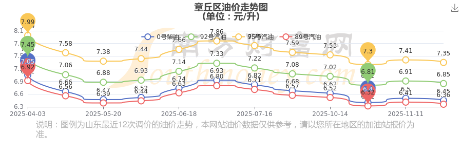 章丘區(qū)11月30日0號柴油歷史油價調(diào)整走勢圖