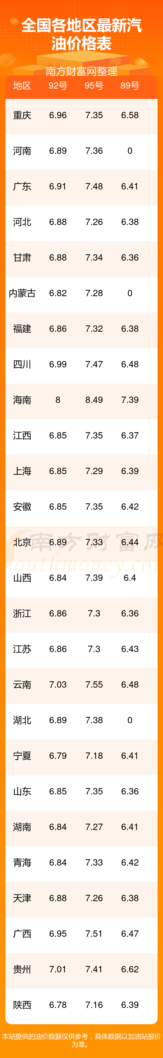 2025年11月30日全國各地油價調(diào)整及最新汽油價格表