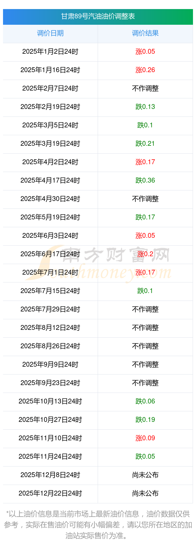 定西2025年油價(jià)調(diào)整時(shí)間及價(jià)格表