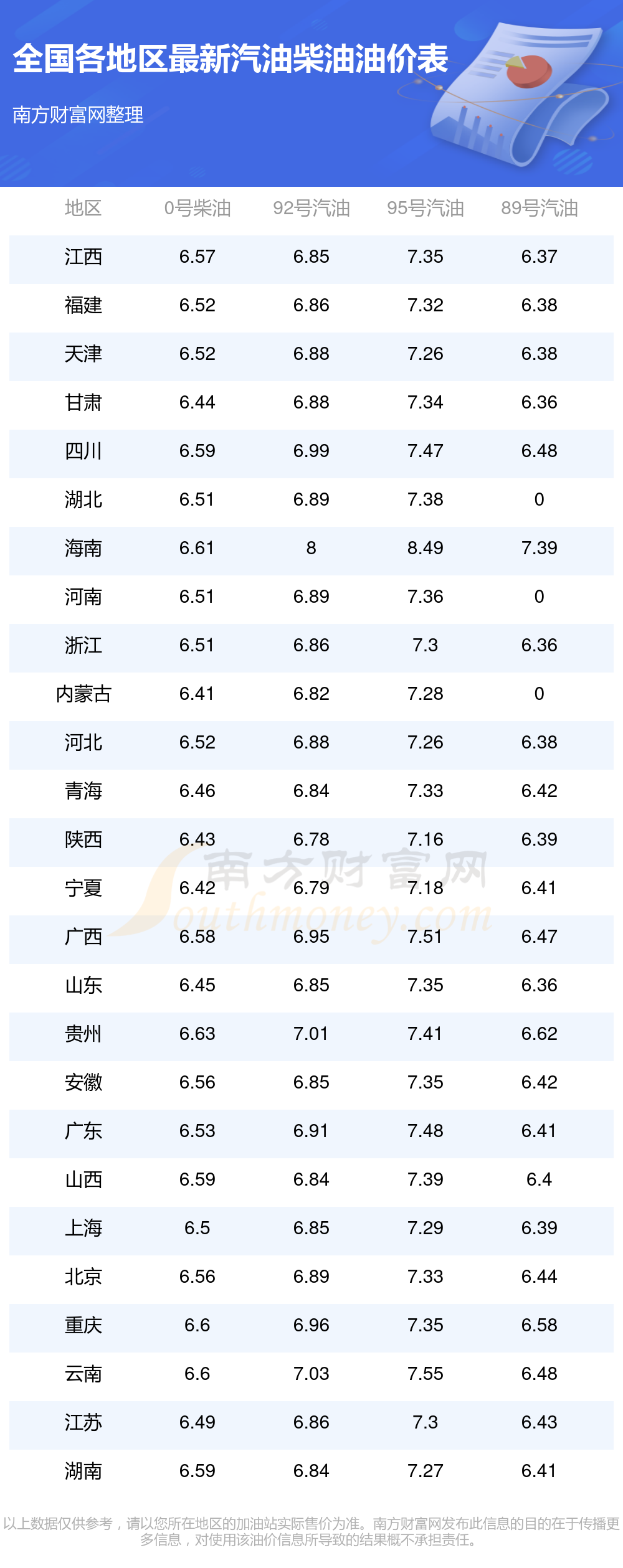 以上油價(jià)信息是當(dāng)前市場(chǎng)上最新油價(jià)信息,油價(jià)數(shù)據(jù)僅供參考,實(shí)際在售油價(jià)可能有小幅偏差,請(qǐng)以您所在地區(qū)的加油站實(shí)際售價(jià)為準(zhǔn)。