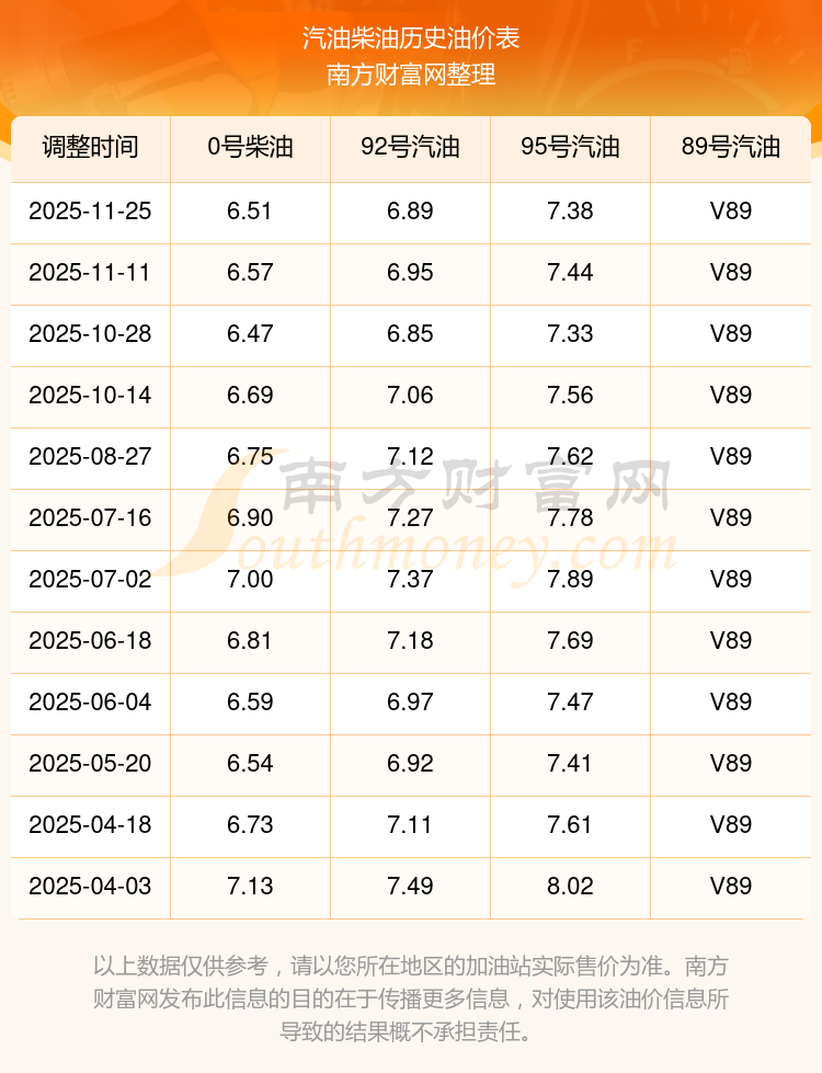 11月30日黃岡汽油、柴油每升價格:距離最近的油價調(diào)整時間是11月25日,92號汽油為6.89元,減了0.06元,減幅達(dá)0.86%;95號汽油為7.38元,減了0.06元,減幅達(dá)0.81%;0號柴油為6.51元,減了0.06元,減幅達(dá)0.91%。下一輪油價調(diào)整時間12月8日24時,距離現(xiàn)在還有8.22天。