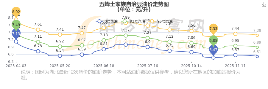 五峰土家族自治縣歷史油價(jià)走勢(shì)圖