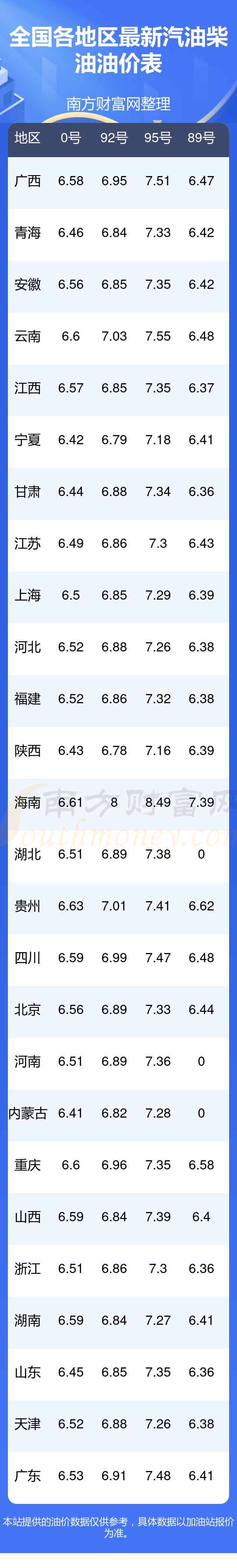 本站提供的油價(jià)數(shù)據(jù)僅供參考,具體數(shù)據(jù)以加油站報(bào)價(jià)為準(zhǔn)。