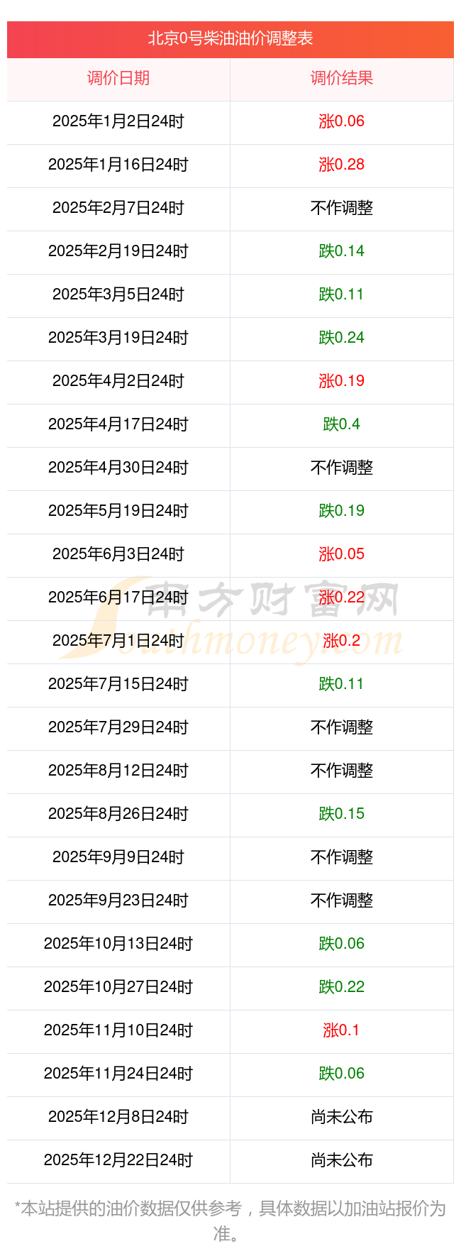 2025年北京油價(jià)調(diào)整日歷時(shí)間表