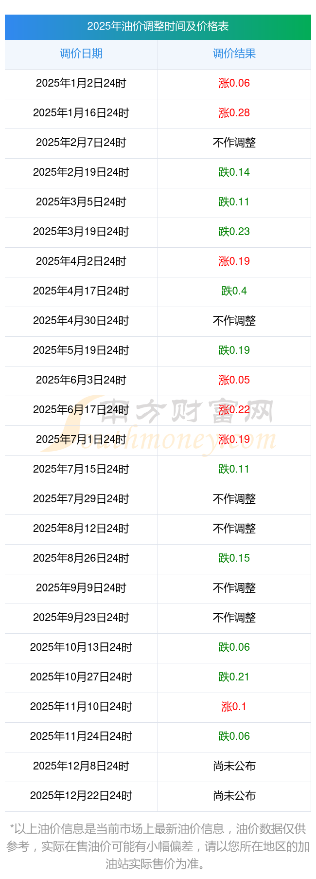 2025年11月30日全國油價調(diào)整時間及價格一覽表