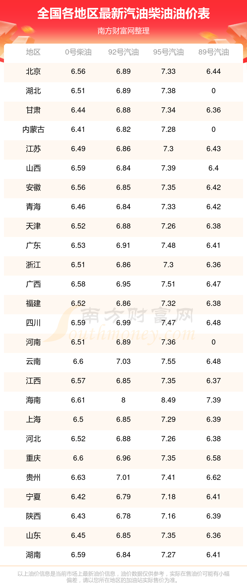 油價數據僅供參考,請以您所在地區(qū)的加油站報價為準。南方財富網發(fā)布此信息的目的在于傳播更多信息,對使用該油價信息所導致的結果概不承擔任何責任。