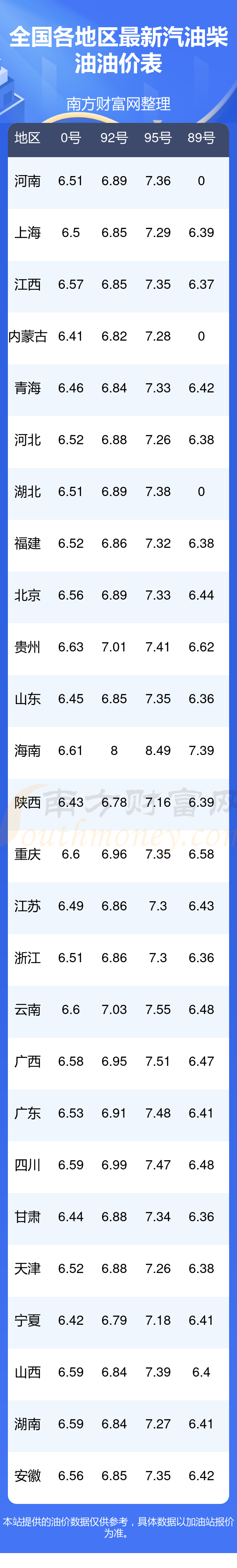 以上油價(jià)信息是當(dāng)前市場(chǎng)上最新油價(jià)信息,油價(jià)數(shù)據(jù)僅供參考,實(shí)際在售油價(jià)可能有小幅偏差,請(qǐng)以您所在地區(qū)的加油站實(shí)際售價(jià)為準(zhǔn)。
