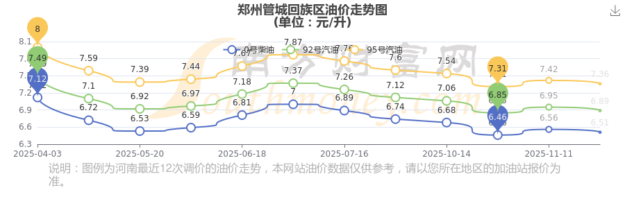 鄭州管城回族區(qū)汽油、柴油11月30日每升的價格為11月25日調(diào)整后的價格:92號汽油6.89元;95號汽油7.36元;0號柴油6.51元。