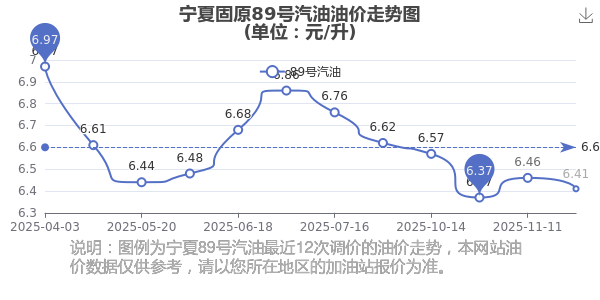 寧夏固原2025年汽油價格調(diào)整走勢圖