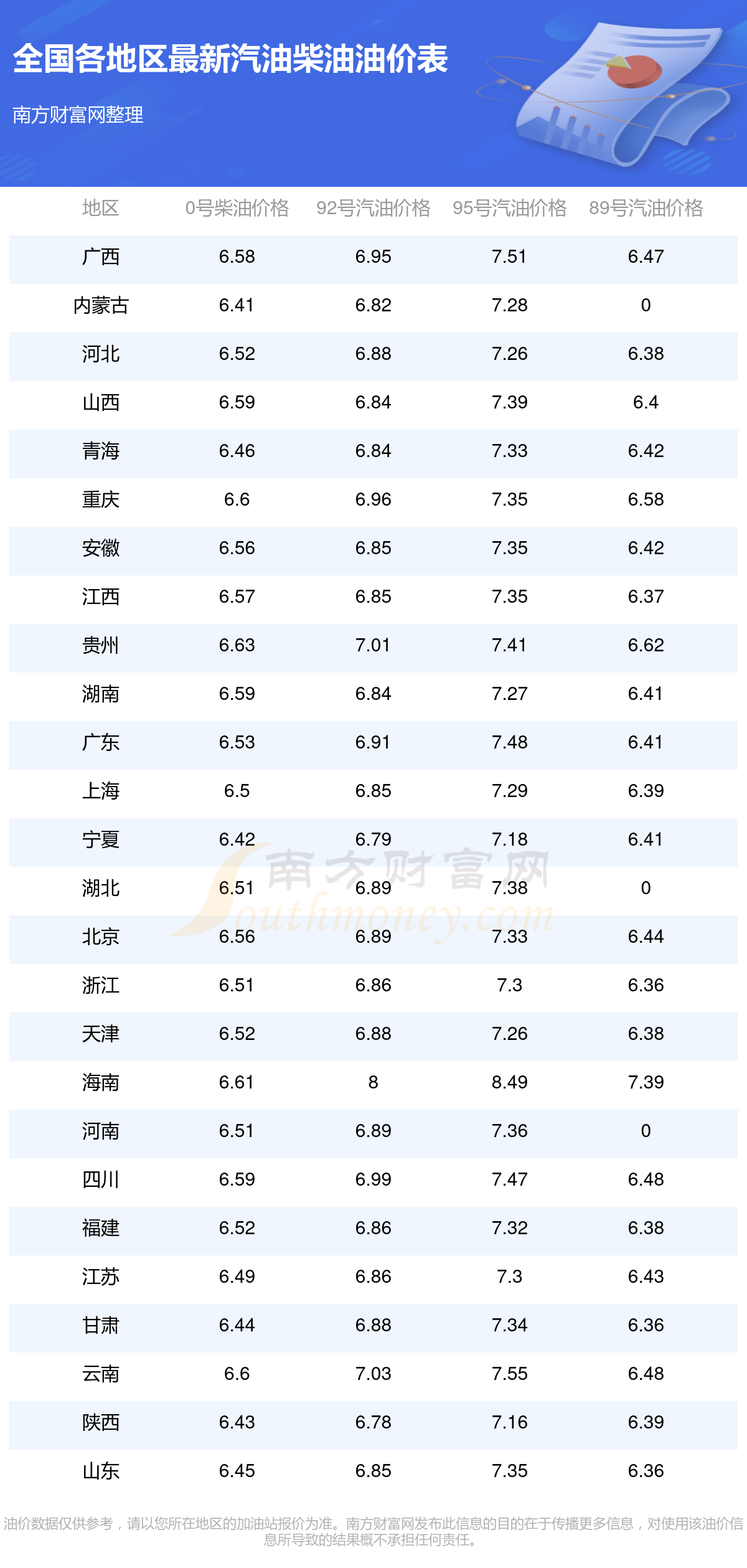 油價數(shù)據(jù)僅供參考,請以您所在地區(qū)的各加油站報價為準(zhǔn)。