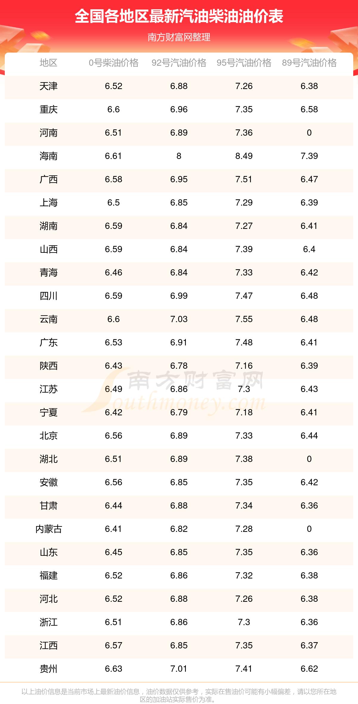 2025年11月30日全國油價(jià)調(diào)整及最新汽油價(jià)格表