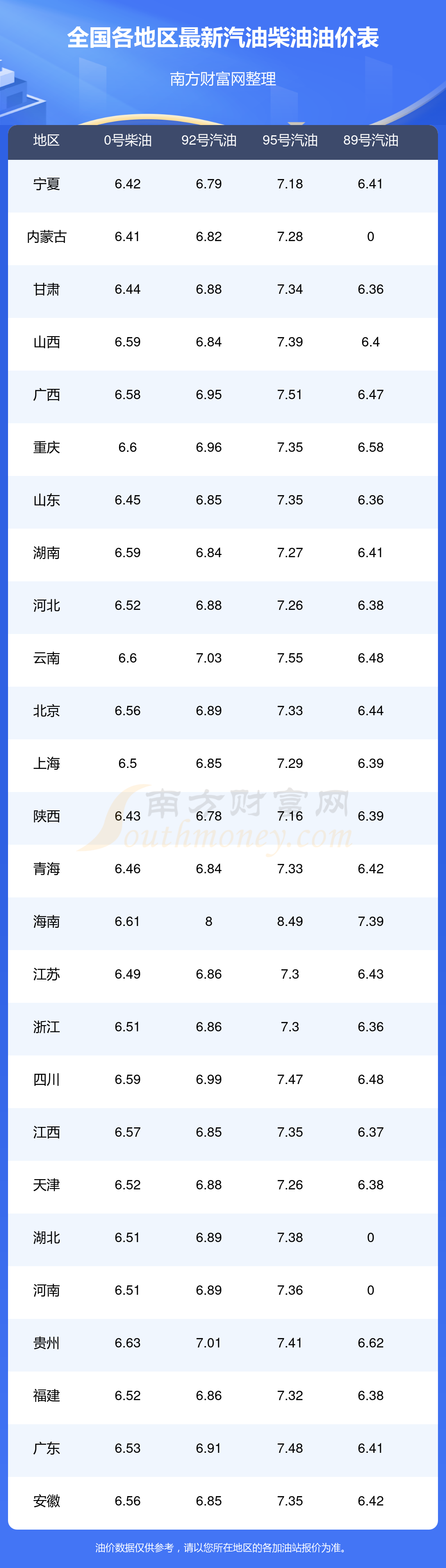 全國各地區(qū)2025年最新油價表