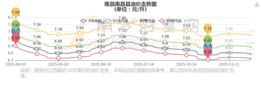 南昌南昌縣歷史油價走勢圖