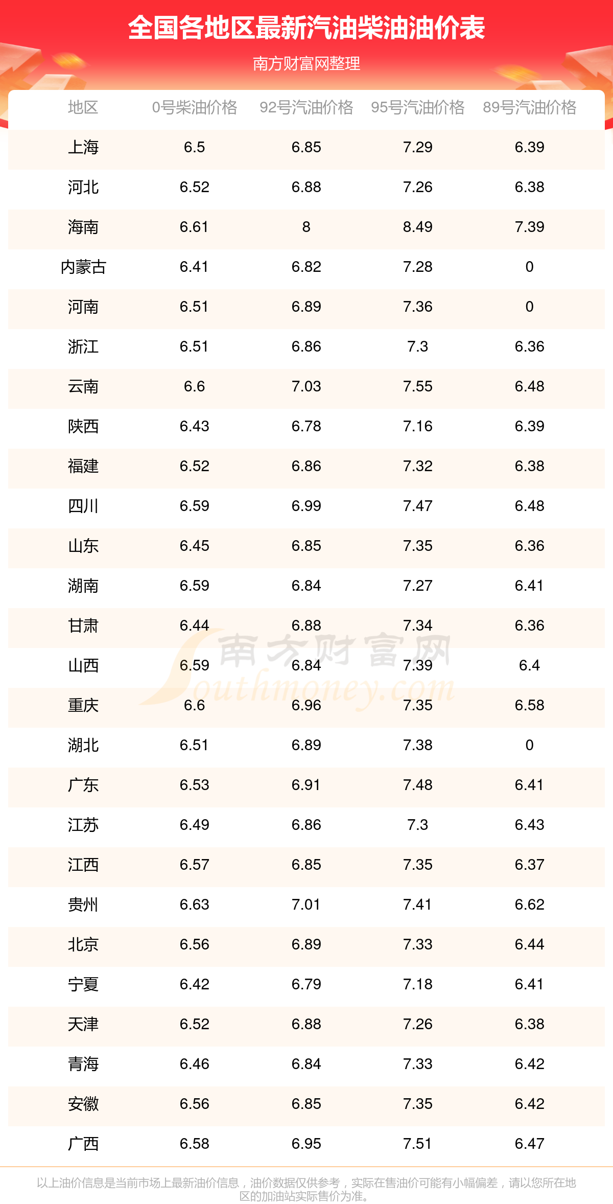 油價(jià)數(shù)據(jù)僅供參考,請(qǐng)以您所在地區(qū)的各加油站報(bào)價(jià)為準(zhǔn)。