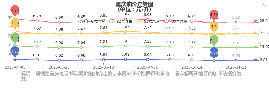 重慶汽油柴油油價(jià)走勢(shì)圖