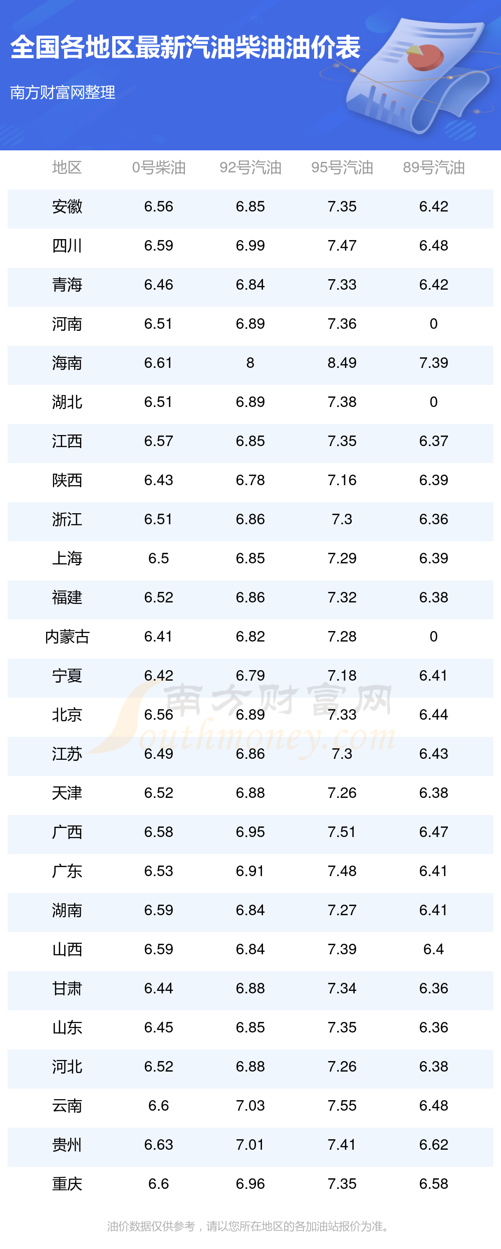 本站提供的油價數(shù)據(jù)僅供參考,具體數(shù)據(jù)以加油站報價為準。