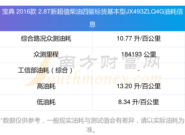 以上油耗數(shù)據(jù)由南方財(cái)富網(wǎng)整理提供,僅供參考。