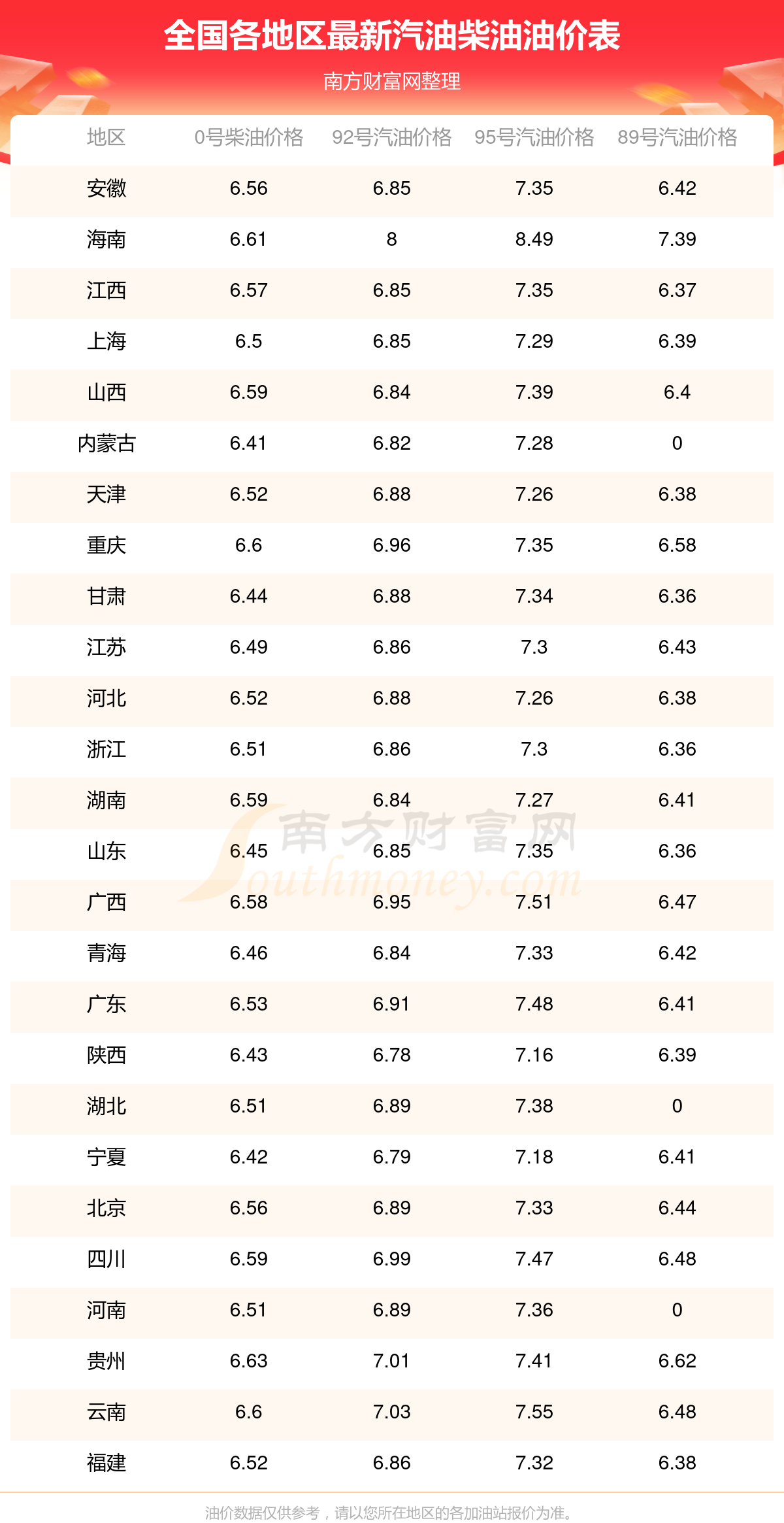 2025年12月1日全國油價調(diào)整及最新汽油價格表