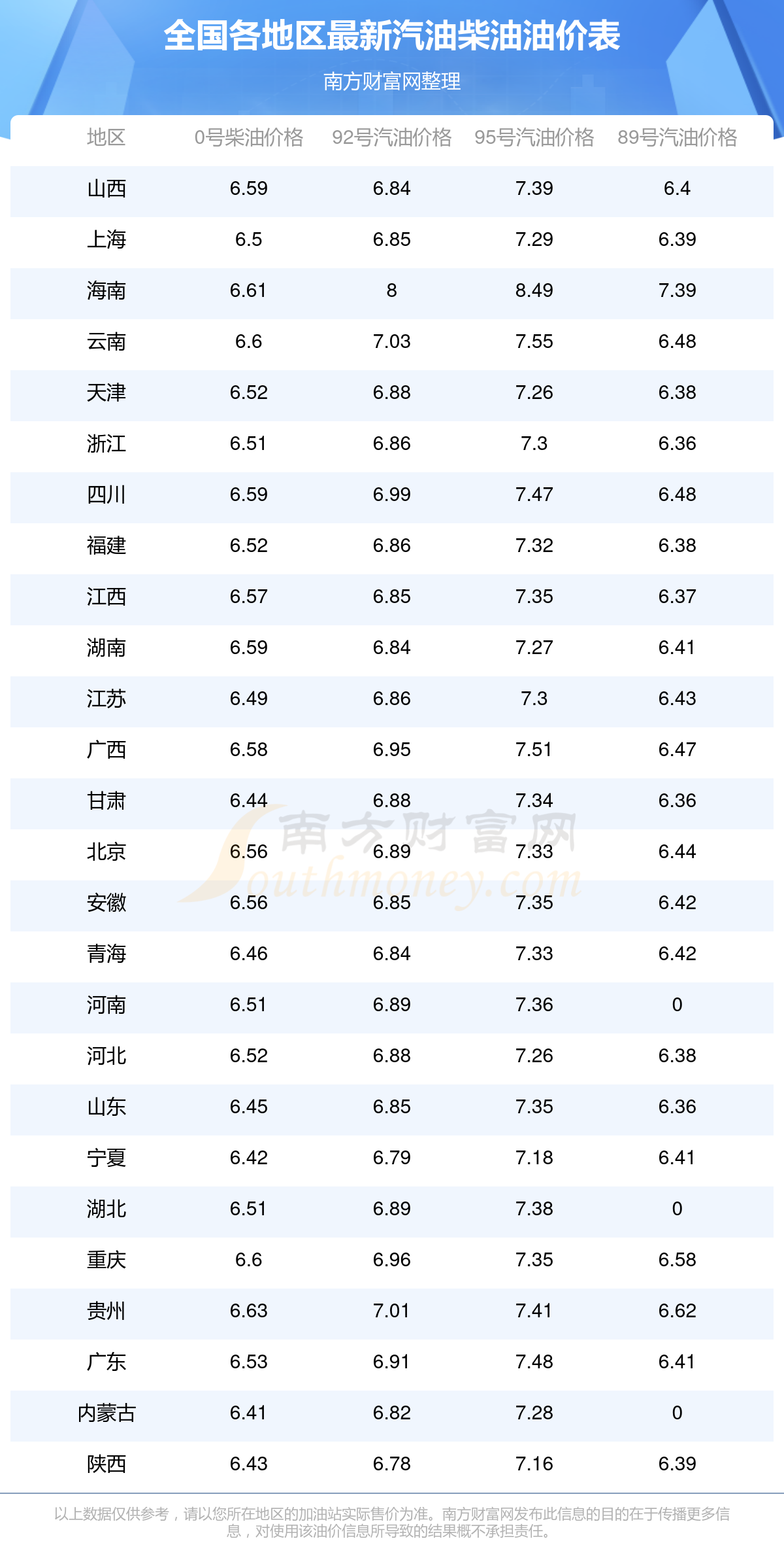 全國(guó)95號(hào)汽油最新平均價(jià)格為:7元每升,其中,最低為陜西,價(jià)格為7.16元/升,最高為海南,價(jià)格為8.49元/升。