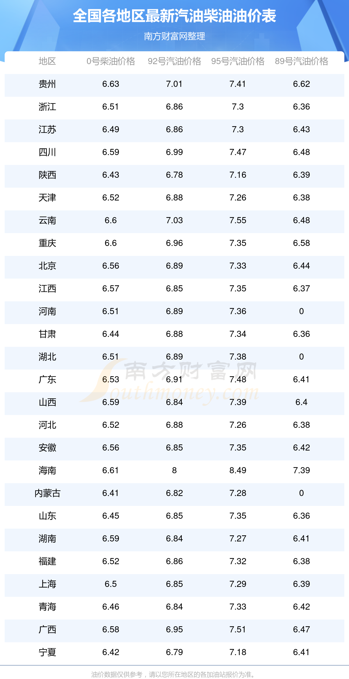 以上油價(jià)信息是當(dāng)前市場(chǎng)上最新油價(jià)信息,油價(jià)數(shù)據(jù)僅供參考,實(shí)際在售油價(jià)可能有小幅偏差,請(qǐng)以您所在地區(qū)的加油站實(shí)際售價(jià)為準(zhǔn)。