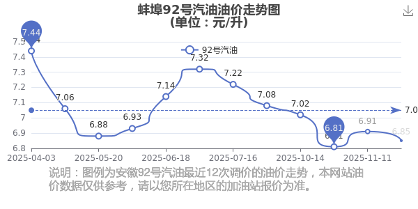 2025年蚌埠汽油價(jià)格歷史走勢(shì)圖