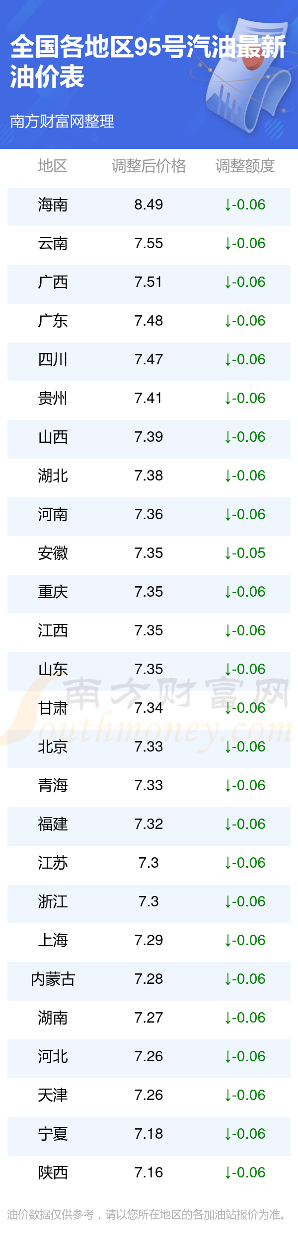 油價數(shù)據(jù)僅供參考,請以您所在地區(qū)的各加油站報價為準(zhǔn)。