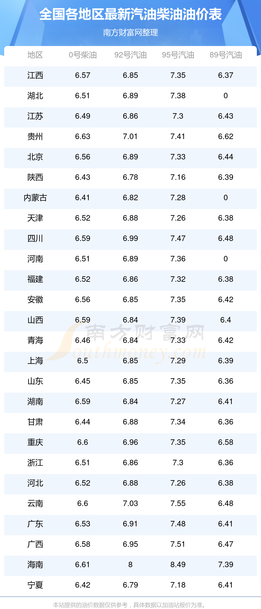 油價數(shù)據(jù)僅供參考,請以您所在地區(qū)的各加油站報價為準。