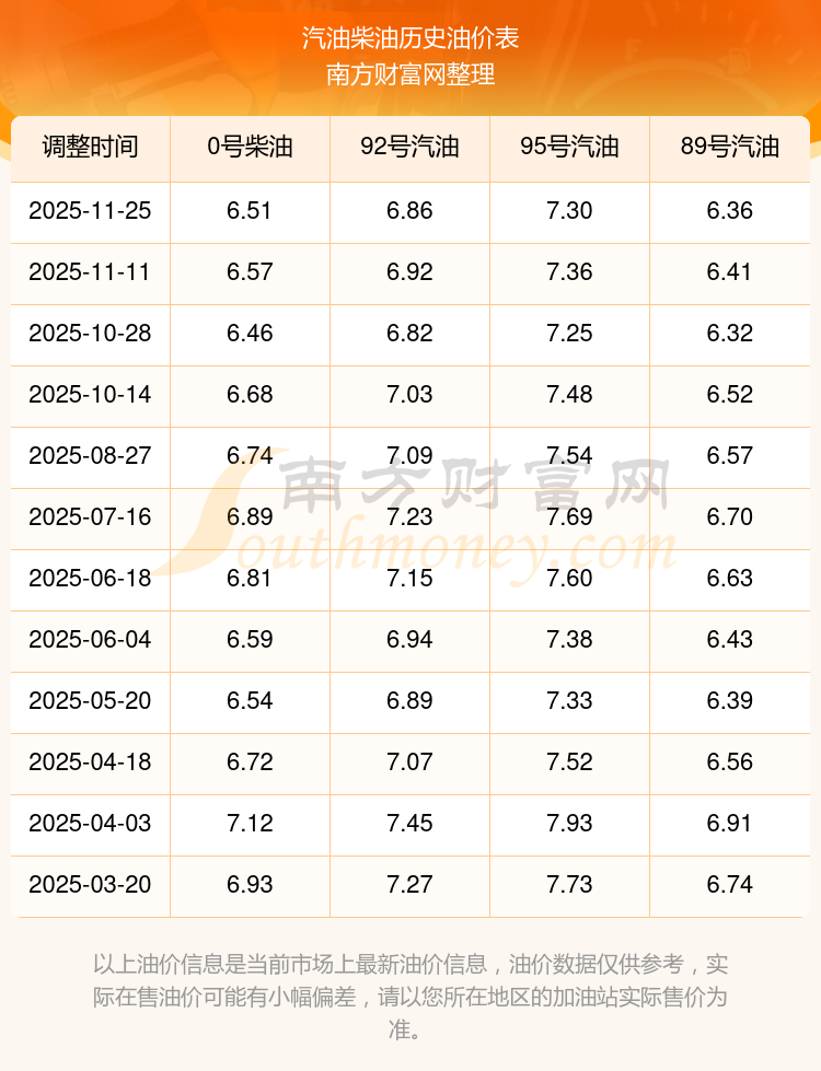 2025年汽油柴油油價(jià)調(diào)整一覽表