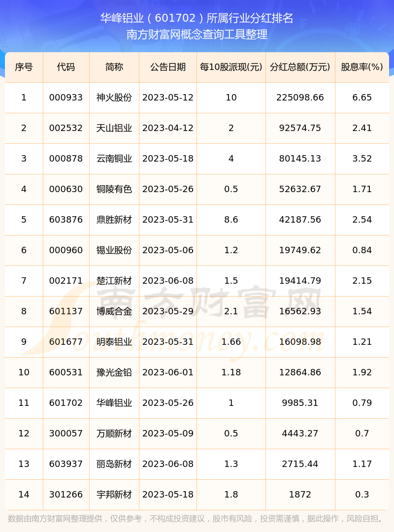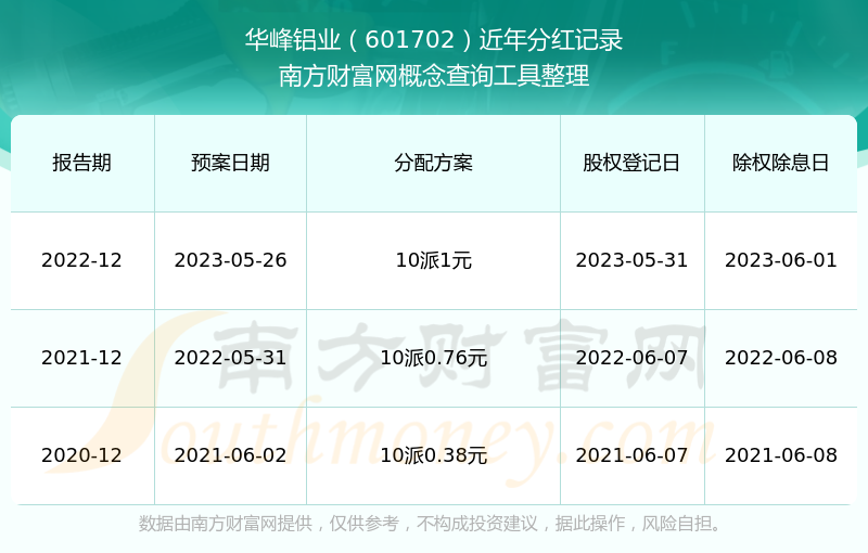 二、華峰鋁業(yè)601702行業(yè)分紅排名