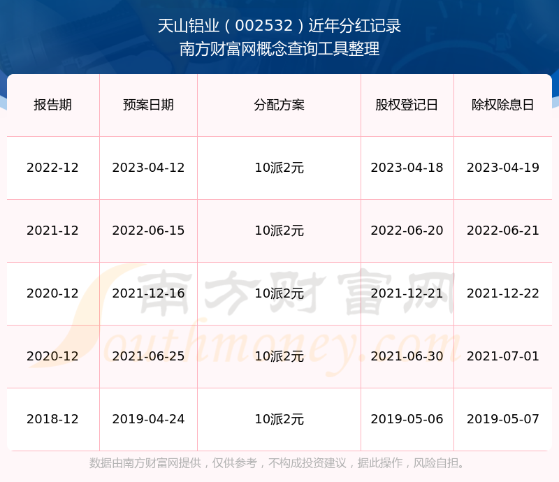 天山鋁業(yè)最新一次公布的分紅方案:10派2元。