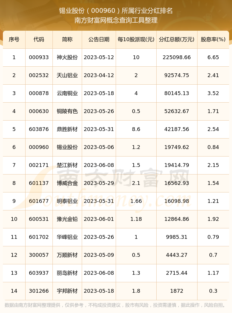 二、錫業(yè)股份000960行業(yè)分紅排名