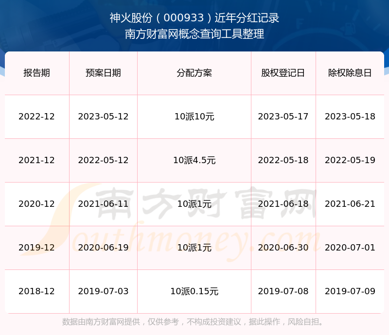 神火股份最新一次公布的分紅方案為10派10元。本次權益分派股權登記日為2023年5月17日,除權除息日為2023年5月18日,派息日為2023年5月18日。