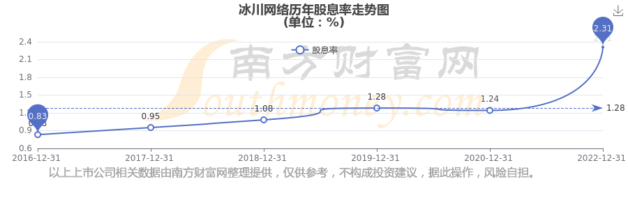 近年冰川網(wǎng)絡(luò)年度股息率走勢如下圖: