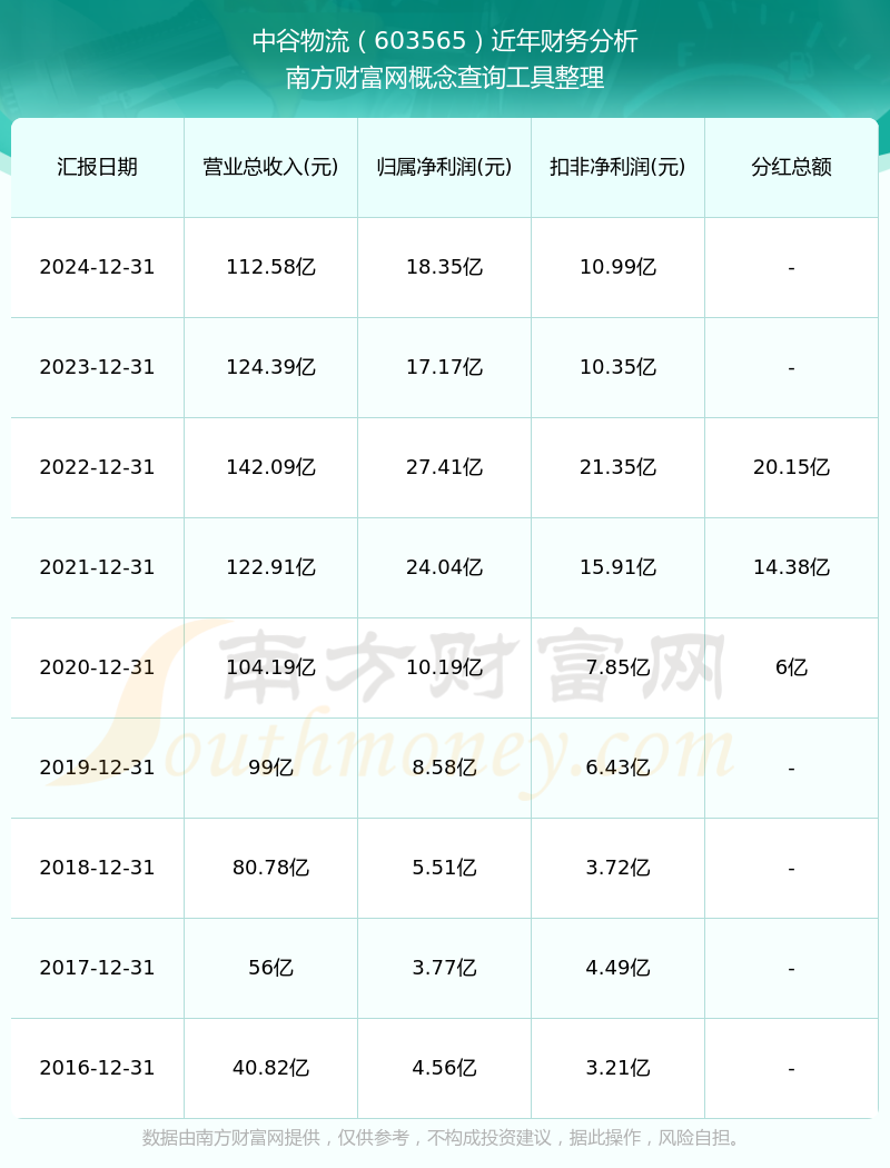 中谷物流歷年分紅派息情況如下表所示: