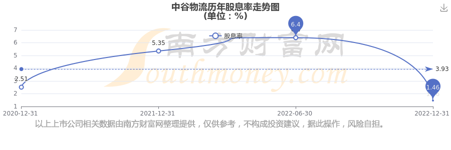 中谷物流歷年股息率走勢(shì)如下圖: