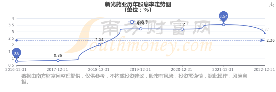 近年新光藥業(yè)年度股息率走勢(shì)如下圖: