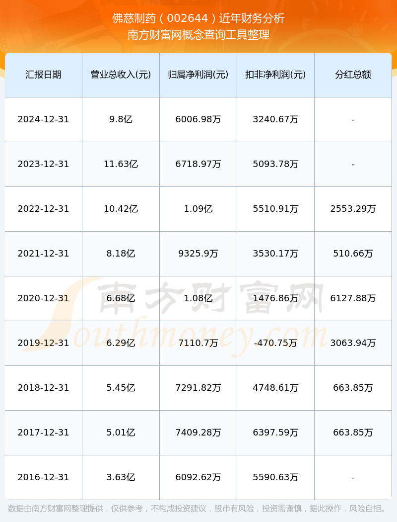 佛慈制藥最新一次公布的分紅方案:10派0.5元。