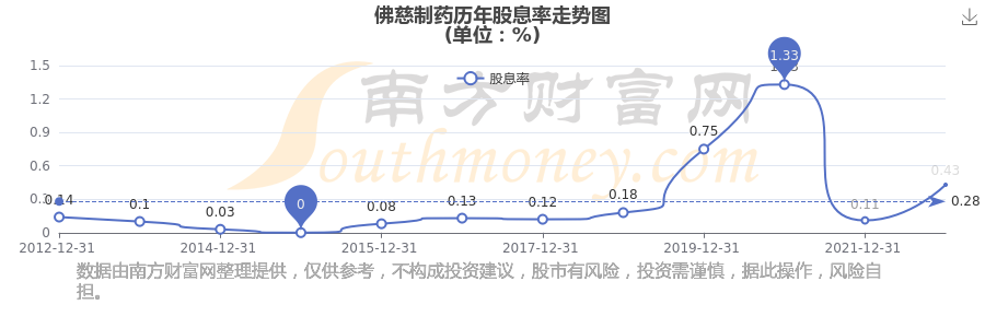 佛慈制藥歷年股息率走勢(shì)如下圖: