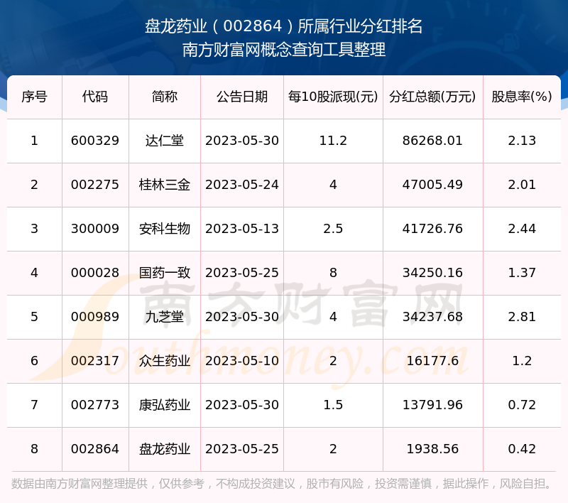 二、盤龍藥業(yè)002864行業(yè)分紅排名
