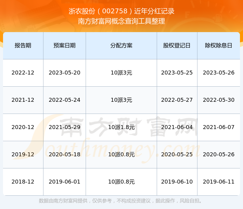 一、浙農(nóng)股份(002758)股票分紅記錄